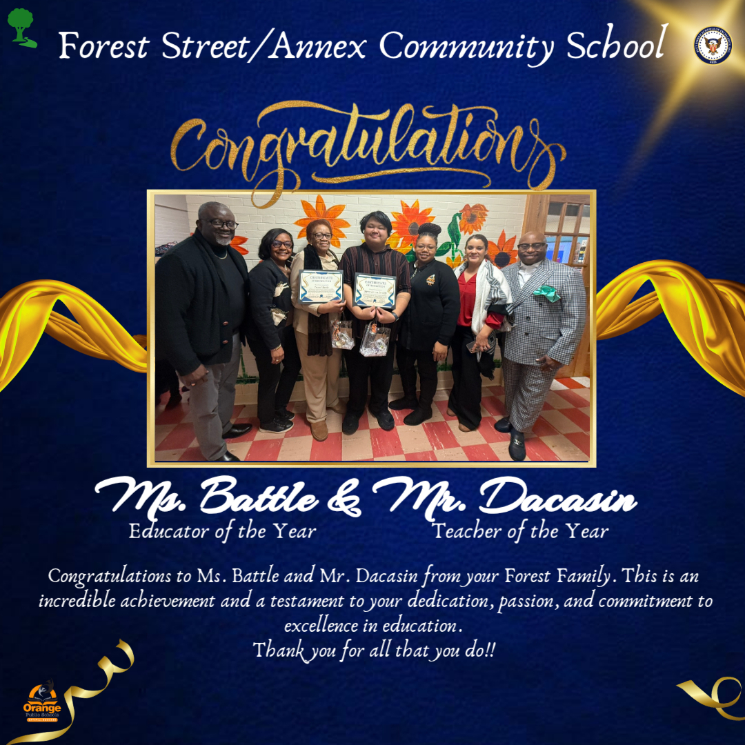 Congratulations to Ms. Battle and Mr. Dacasin from your Forest Family. Thank you for all that you do!! #Foreststrong!!